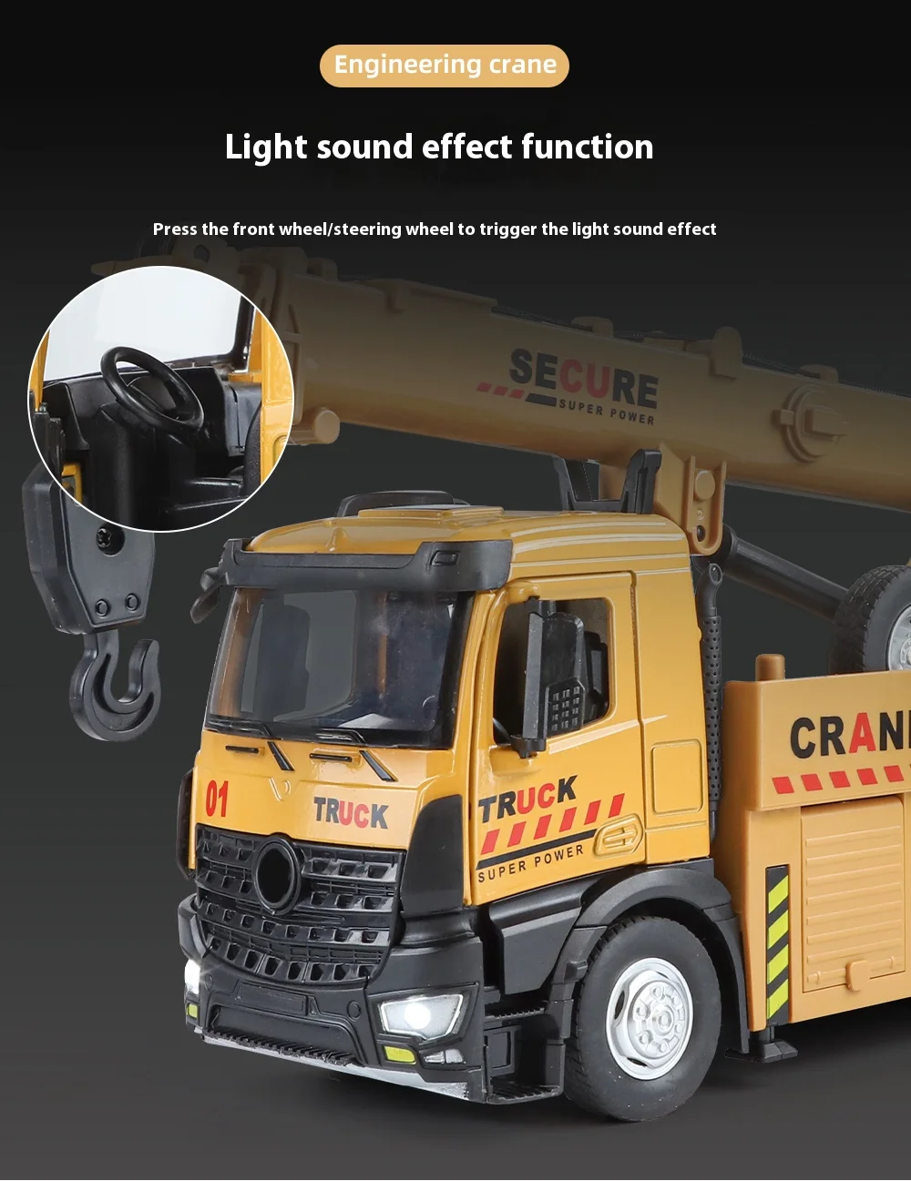Metal Die-Cast Crane Model - Sound & Light Engineering Toy Car | Kids' Birthday Gift